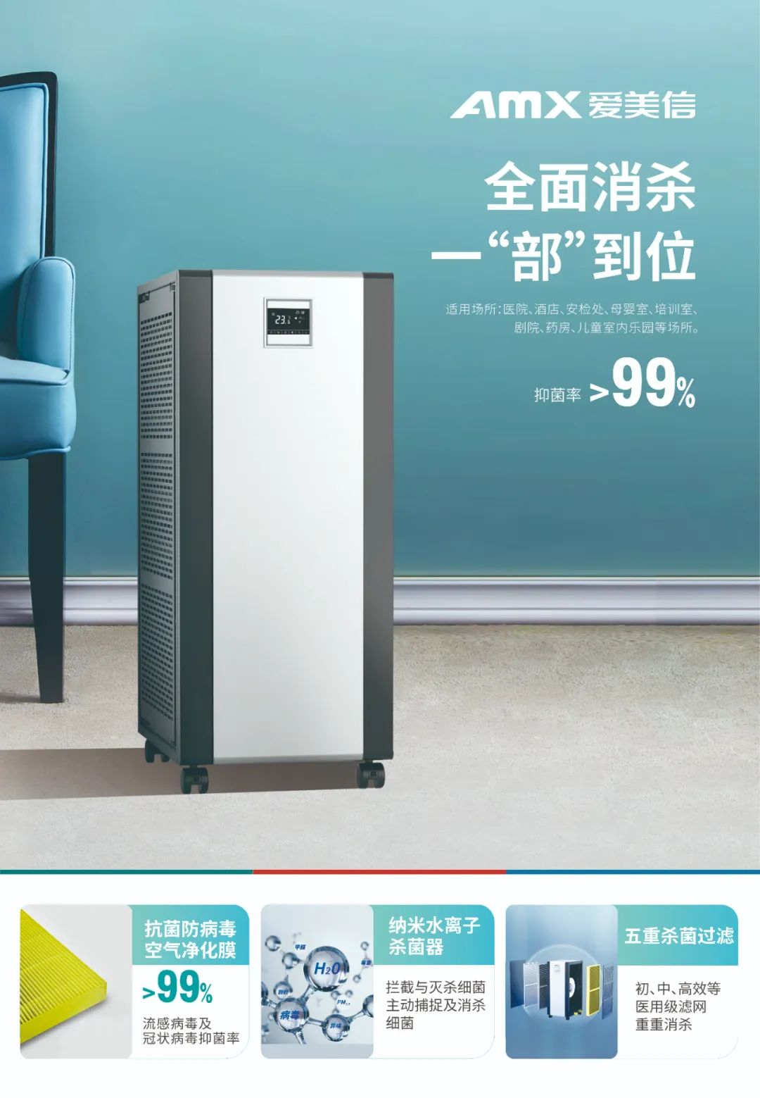 本次大會(huì)愛(ài)美信推出了四大空間環(huán)境空氣潔凈殺菌解決方案: