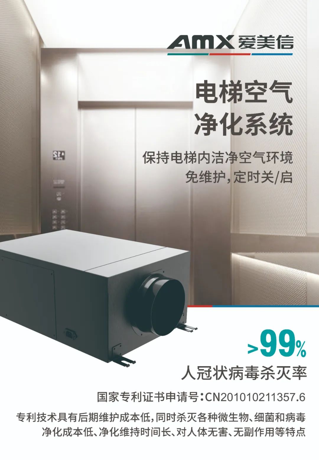 3.電梯空間殺菌潔凈系統(tǒng),針對(duì)密閉、狹窄空間采用先進(jìn)的分子擊斷技術(shù)、迅速滅殺電梯空間中的細(xì)菌、病毒,減少傳染病毒的交叉?zhèn)鞑?,滅殺?xì)菌病毒99.99%。